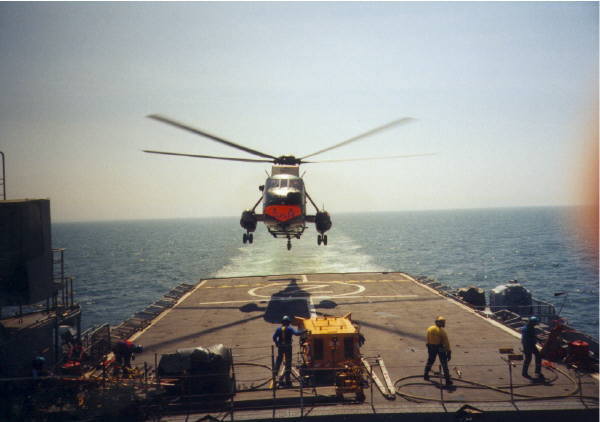 gemeinsam mit zwei Such- und Bordhubschraubern vom Typ "Sea King" MK 41 - auf